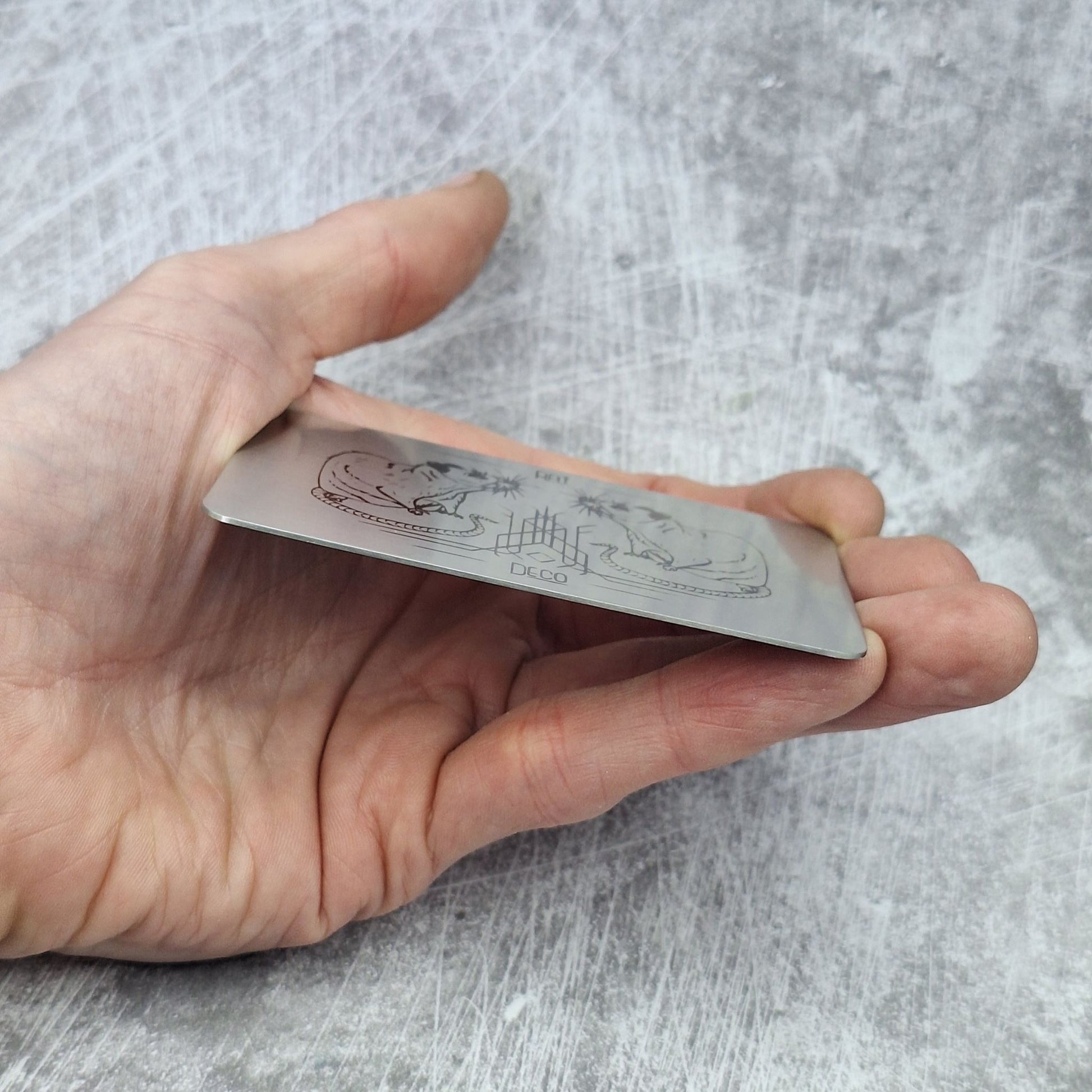 The cards are stainless steel, 86x54mm and 0.8mm thick. So they're sturdy and with a nice weight.